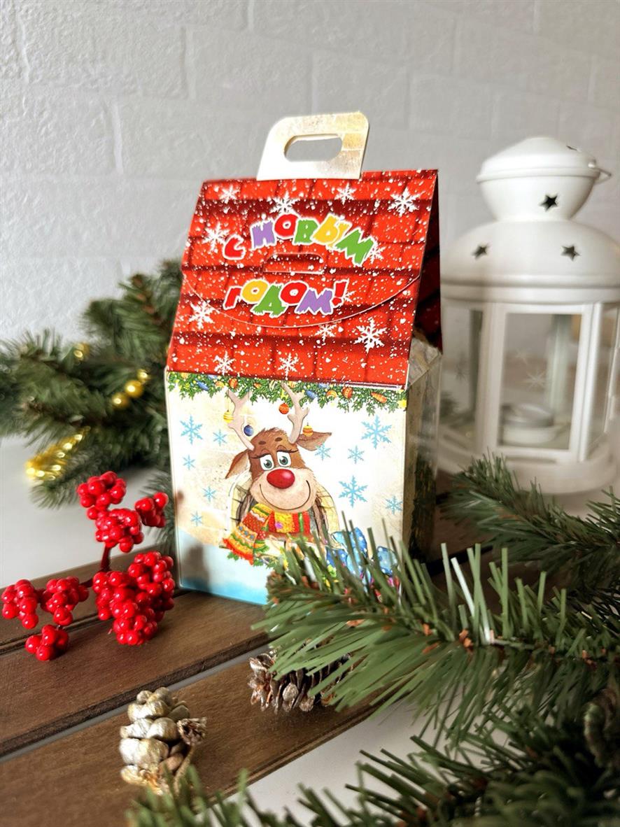 Коробка новогодняя подарочная Новогодний арт, 91х70х157 (+30) мм (домик)
