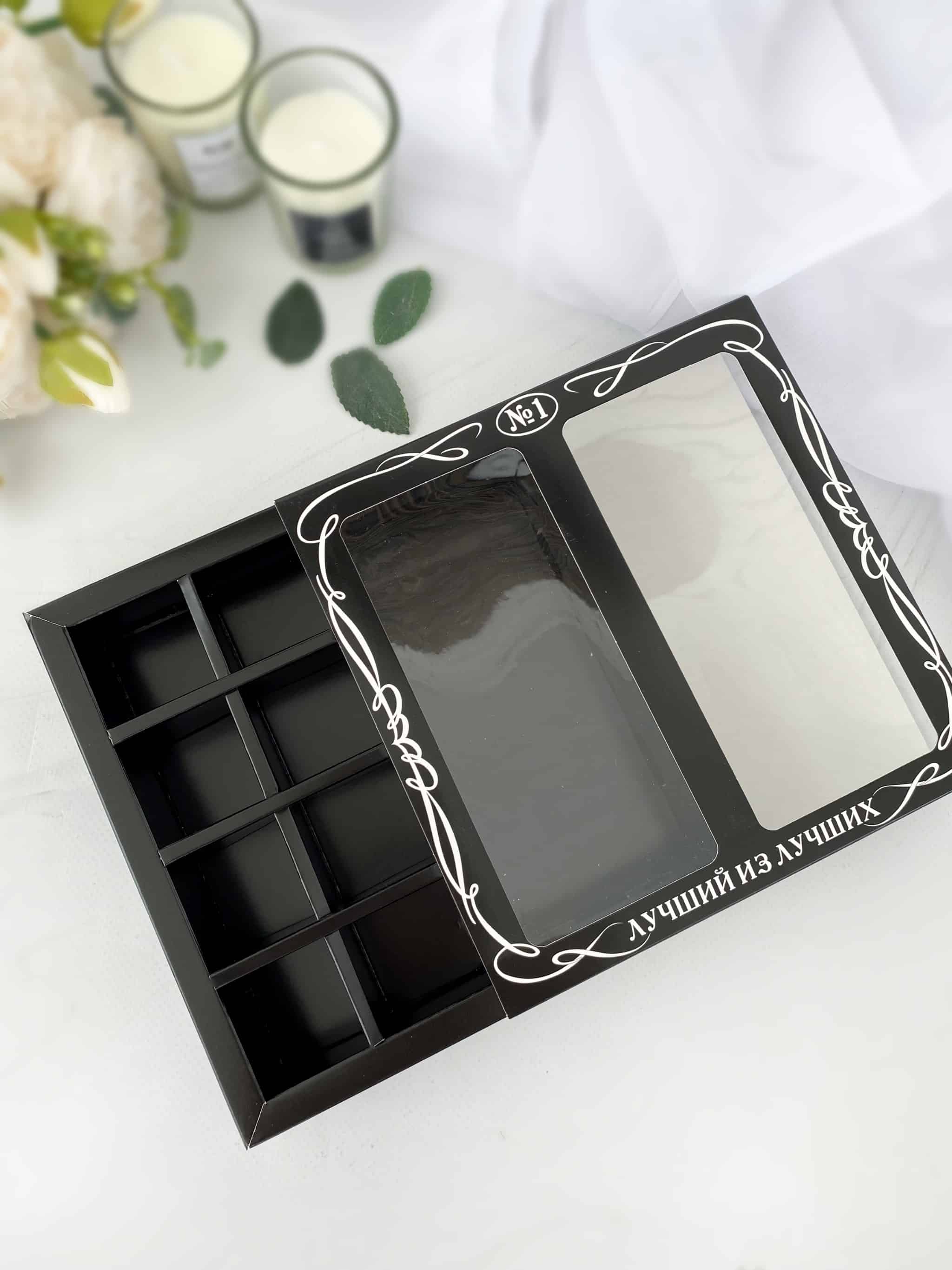 Упаковка под 8 конфет и плитку шоколада «Мужская черная»
