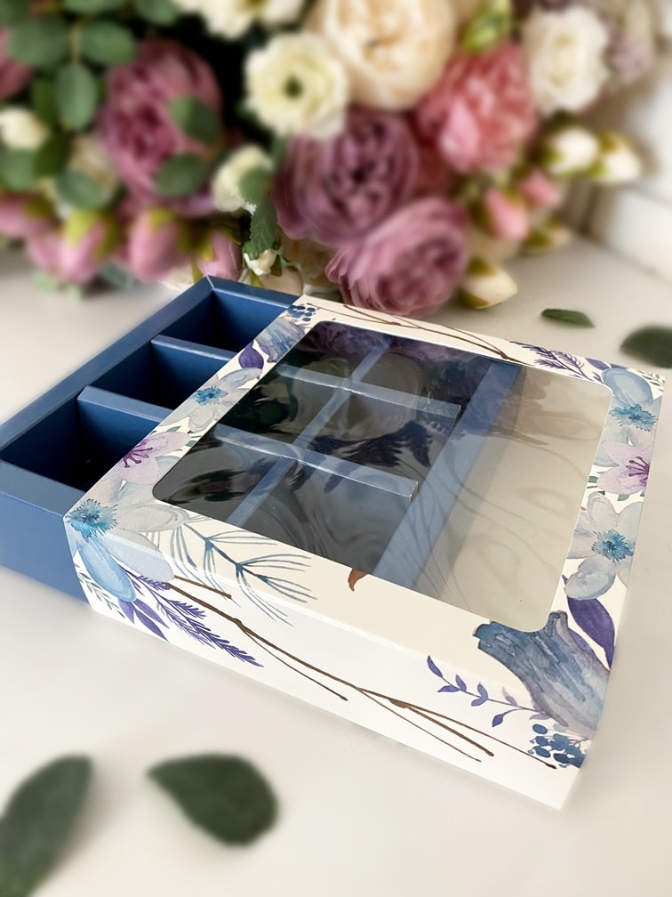 Упаковка под 9 конфет «Голубые цветы»