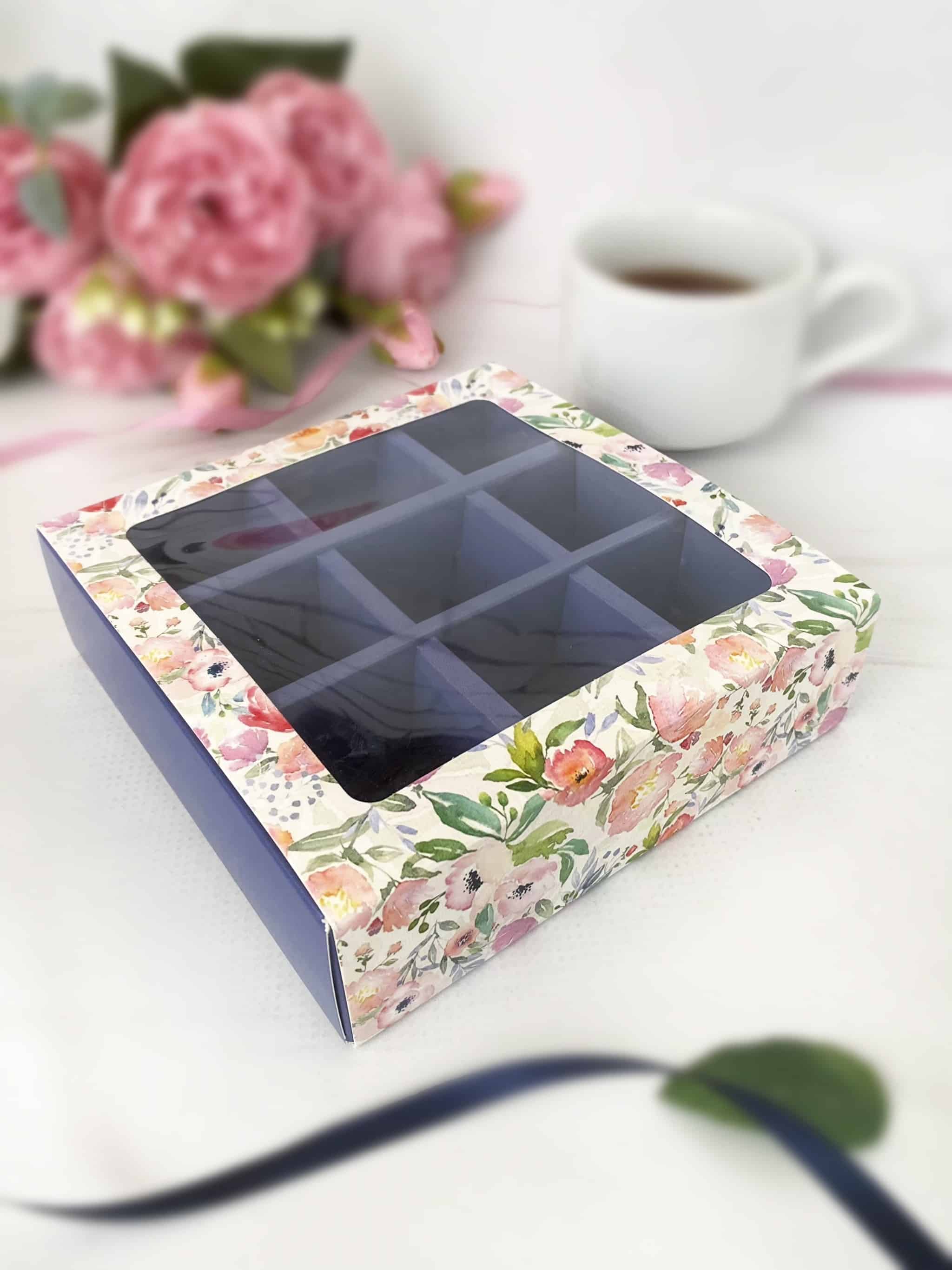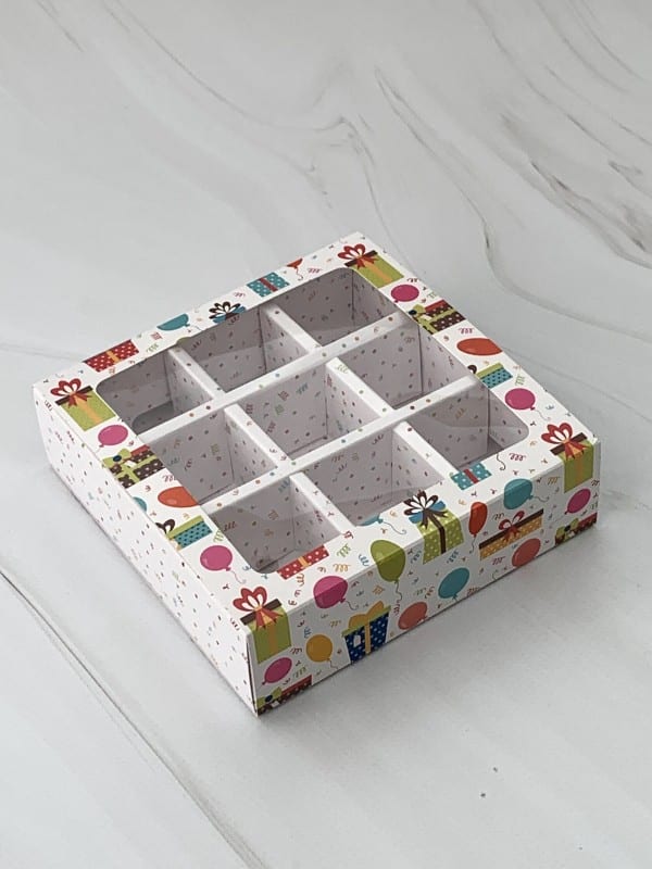 Коробка на 12 конфет с внутренними разделителями. Размер ячеек 3,5*3,5*3,5 см. Подходит для пряников, мармелада и иных сладких презентов. Может использоваться для размещения изделий ручной работы