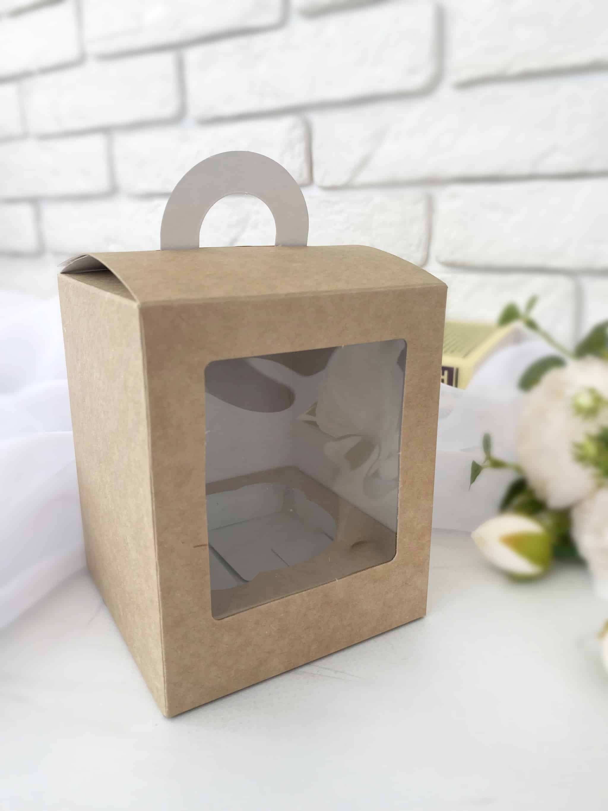 Упаковка под 1 капкейк/маффин/пирожное с ручкой, крафт