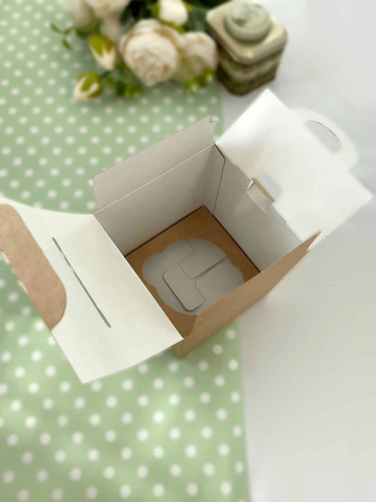 Предлагаем варианты разных форм: бумажные с ручкой, прозрачной крышкой, бенто-торт, в виде купола с золотым дном.