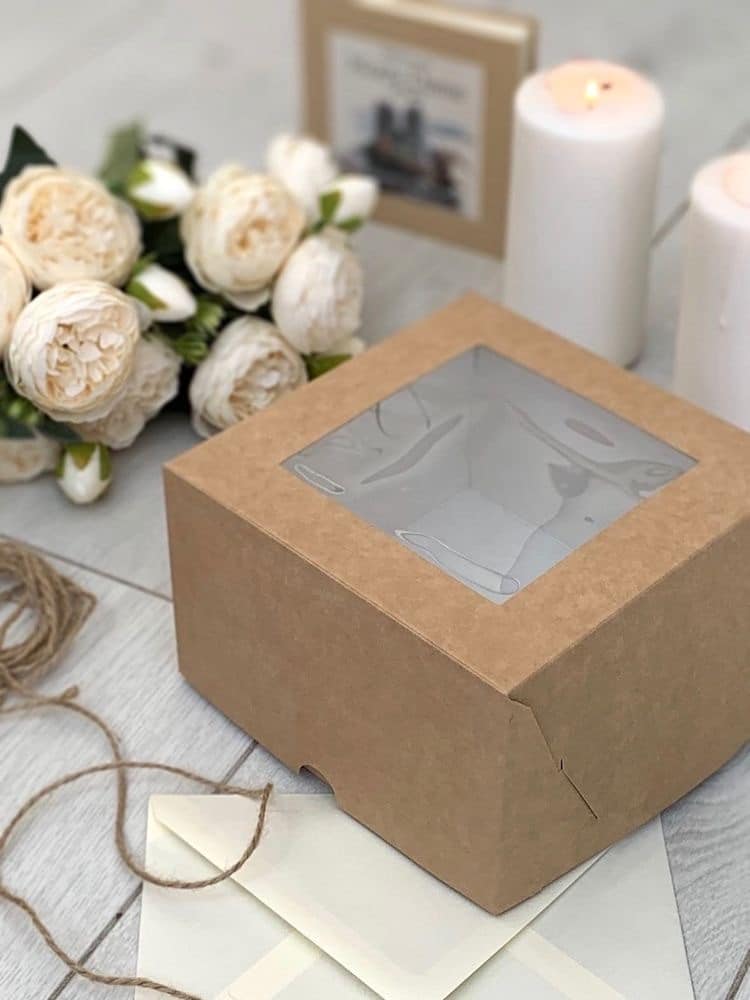 Упаковка под 4 капкейка/пирожных/бенто-торт с окном, крафт