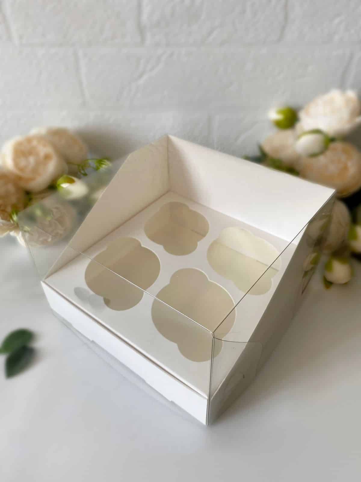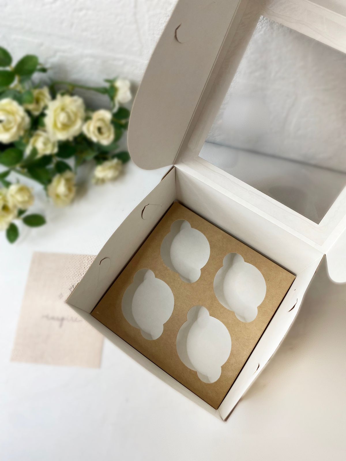 Упаковка под 4 капкейка/пирожных/бенто-торт с окном, белая