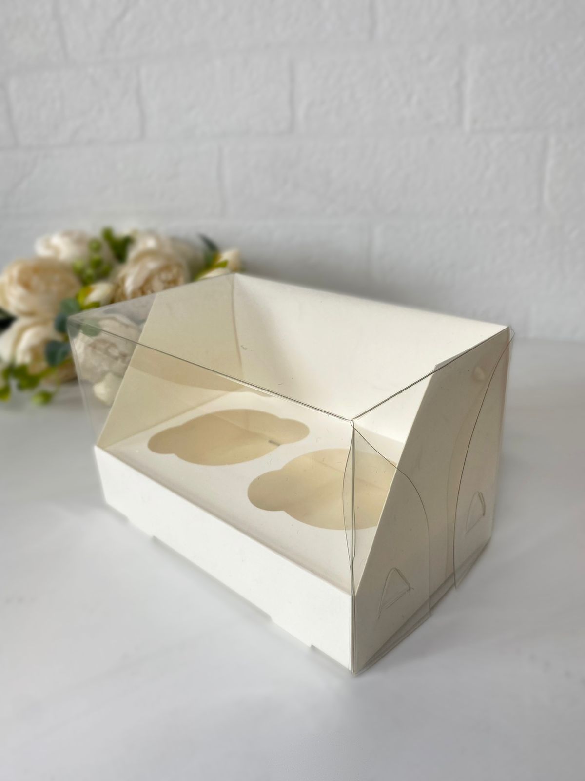 Упаковка под 2 капкейка с прозрачной крышкой, белый