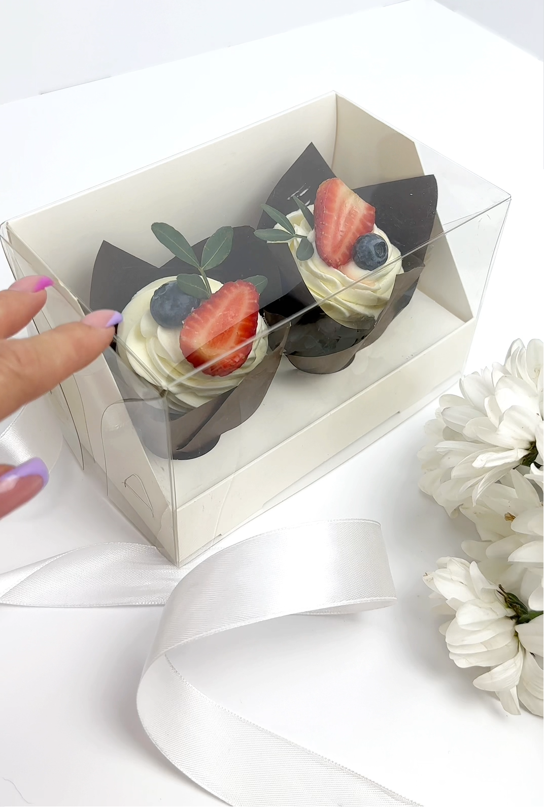 Новинка, коробочка на 2 капкейка с прозрачной крышкой. Подходит для размещения 2 капкейков, пирожных и других сладких презентов. Можно использовать как универсальную упаковку для размещения подарков, изделий ручной работы