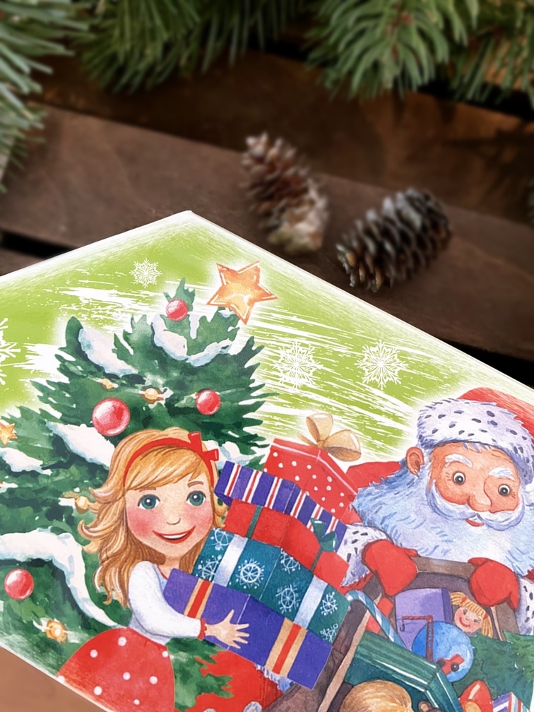 Коробка новогодняя подарочная конфета Дед Мороз и дети, 100х200х43 мм