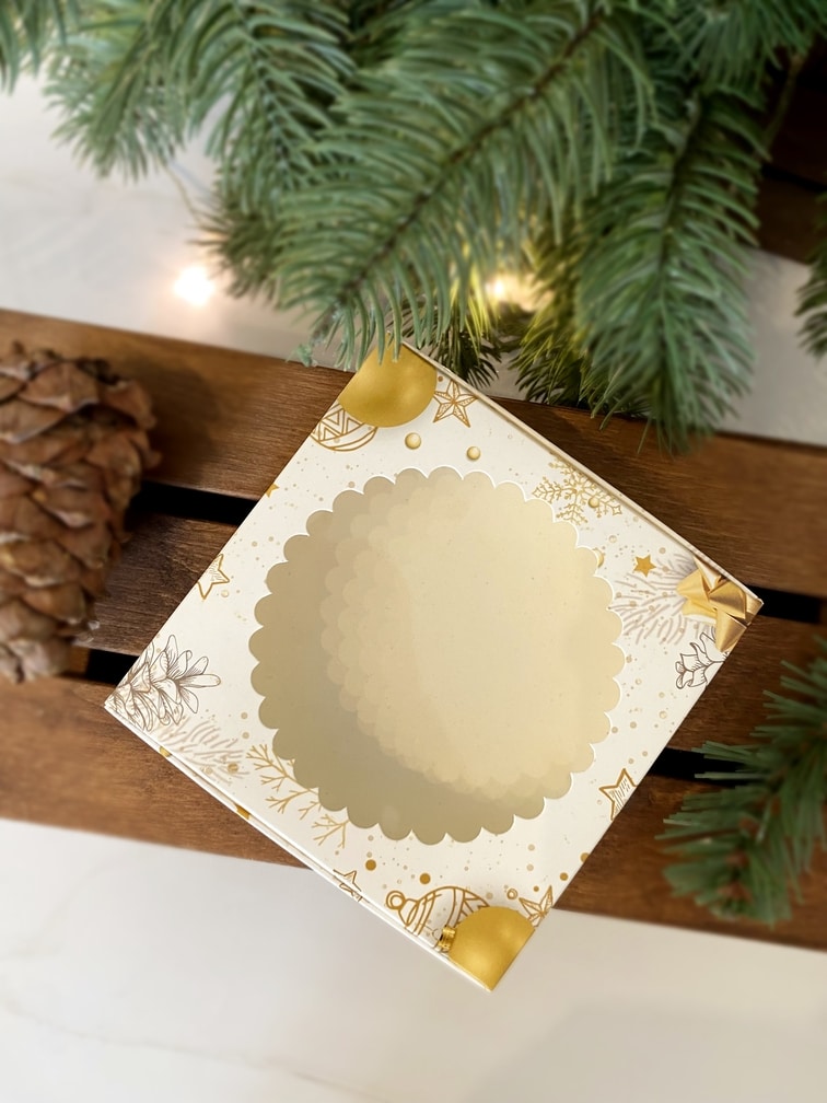 Коробка под печенье/пряник/мармелад/пончик Золотой Новый Год, 115*115*30 мм