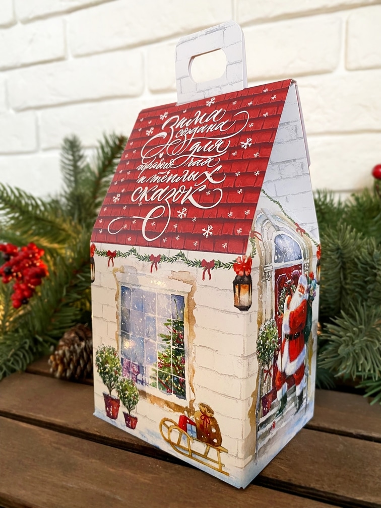 Коробка новогодняя подарочная Тёплая сказка, 91х70х157 (+30) мм (домик)