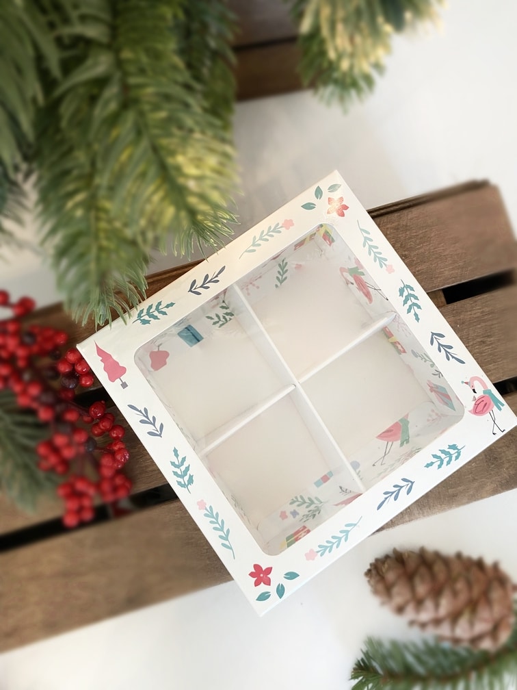Упаковка под 4 макаронс/моти/конфеты «Новогодний Фламинго»