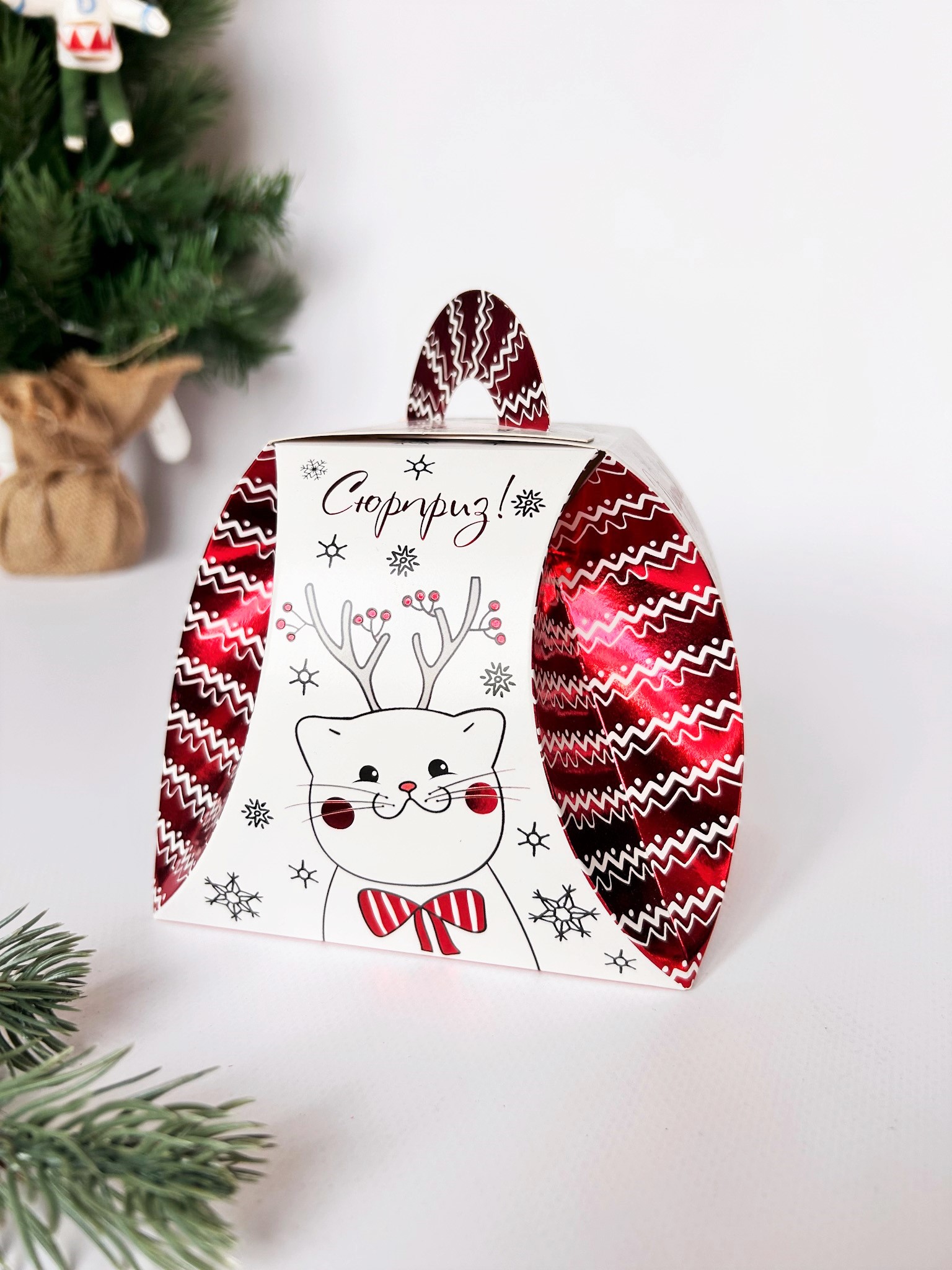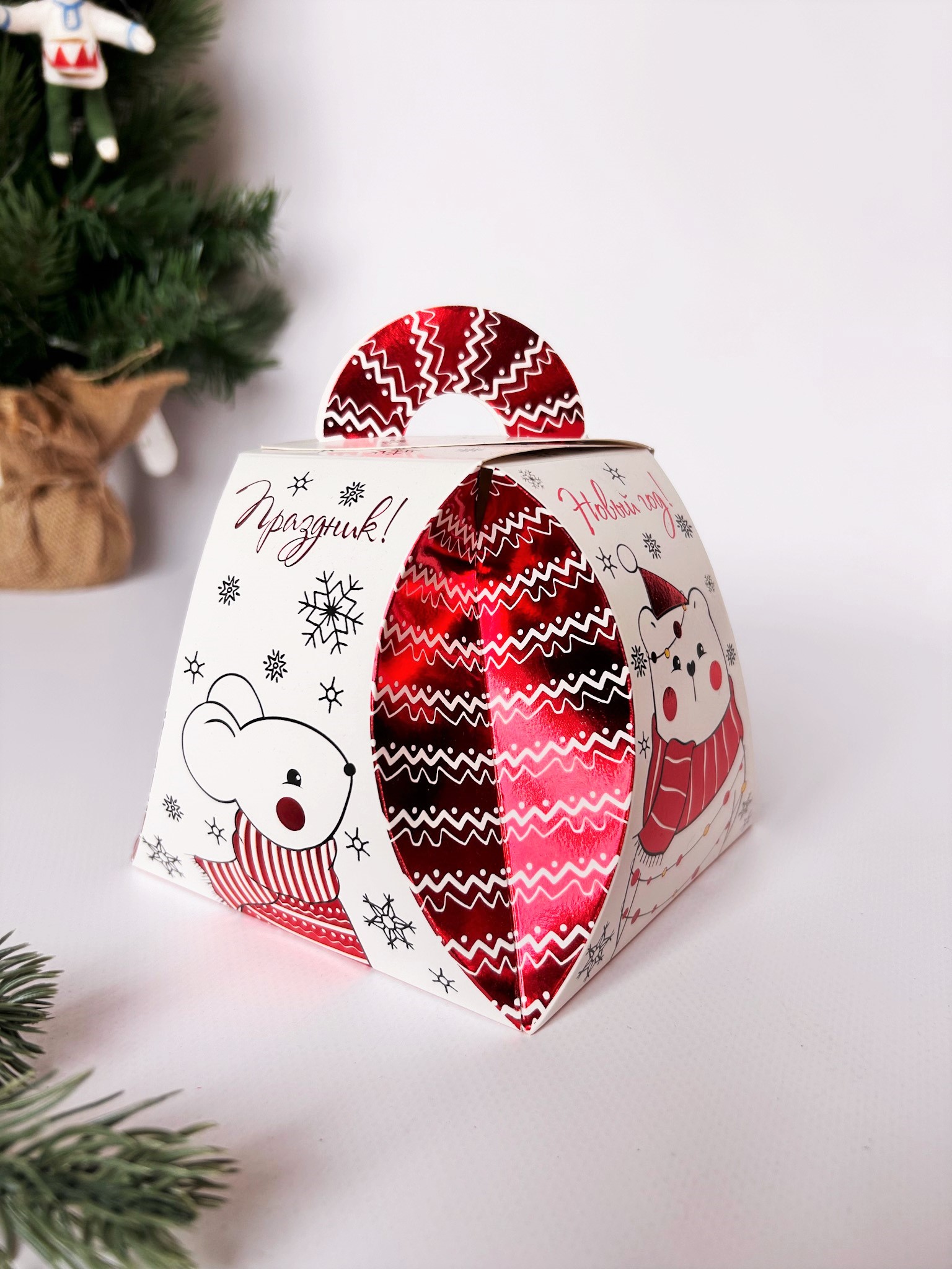 Подарочная коробка новогодней тематики, размеры , 13,3х11,6х12,6 см., продается упаковками по 5 шт (цена указана за 1 шт), вес подарка 400 гр