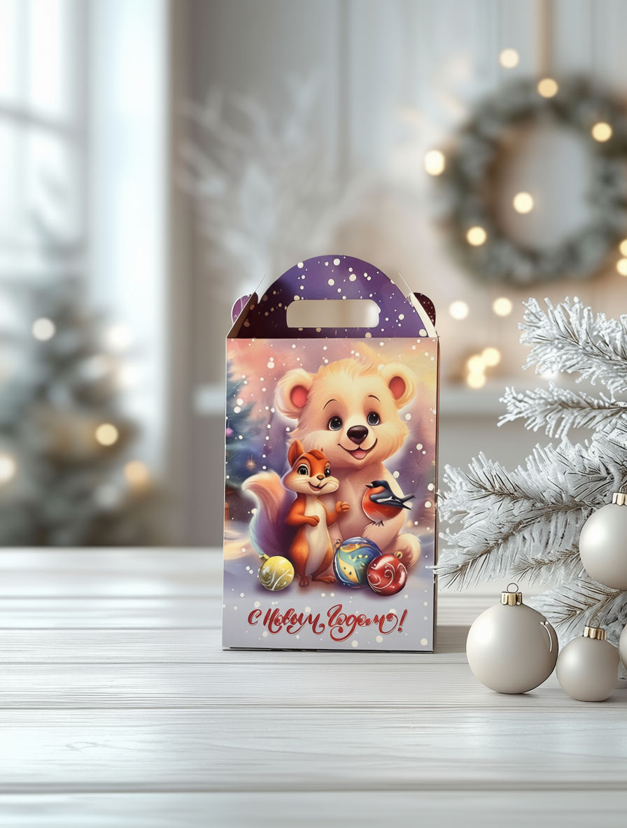 Коробка новогодняя подарочная Весёлые друзья, 145х80х150 (+40) мм