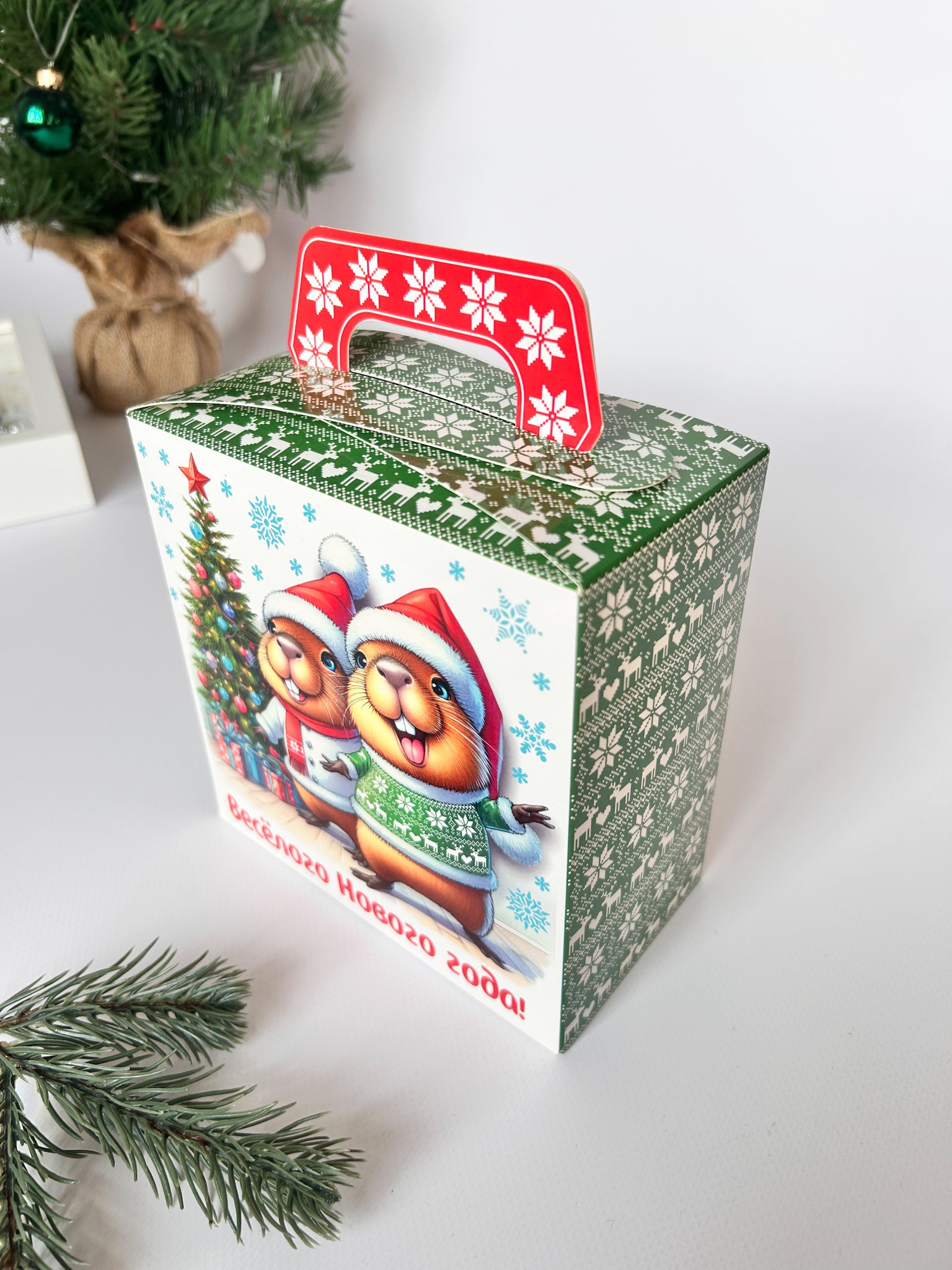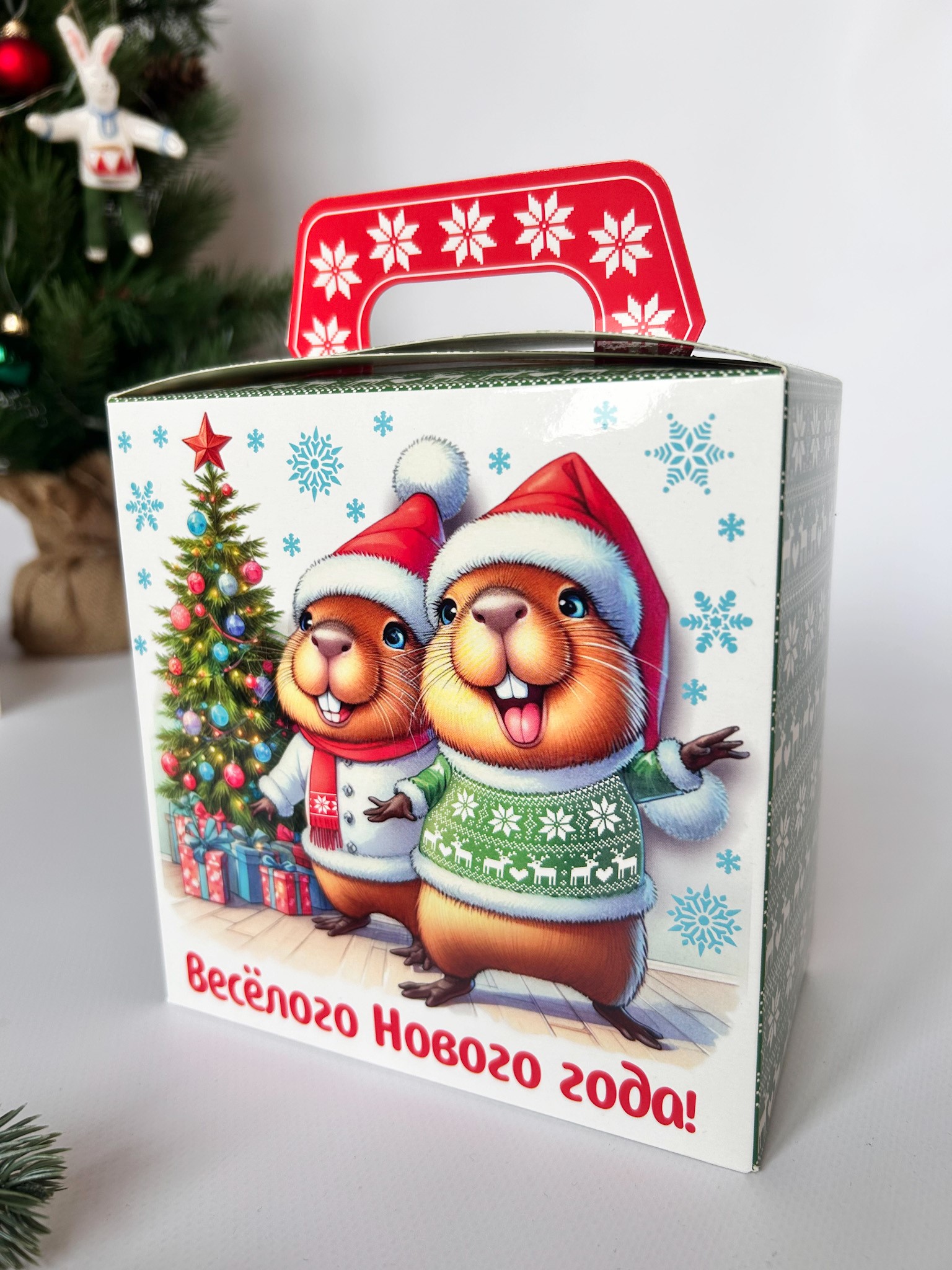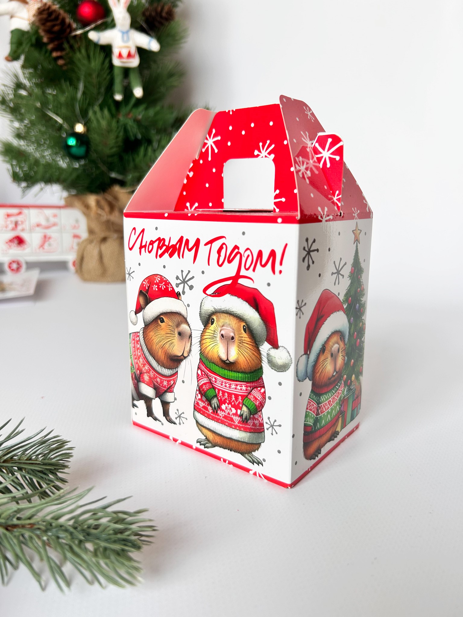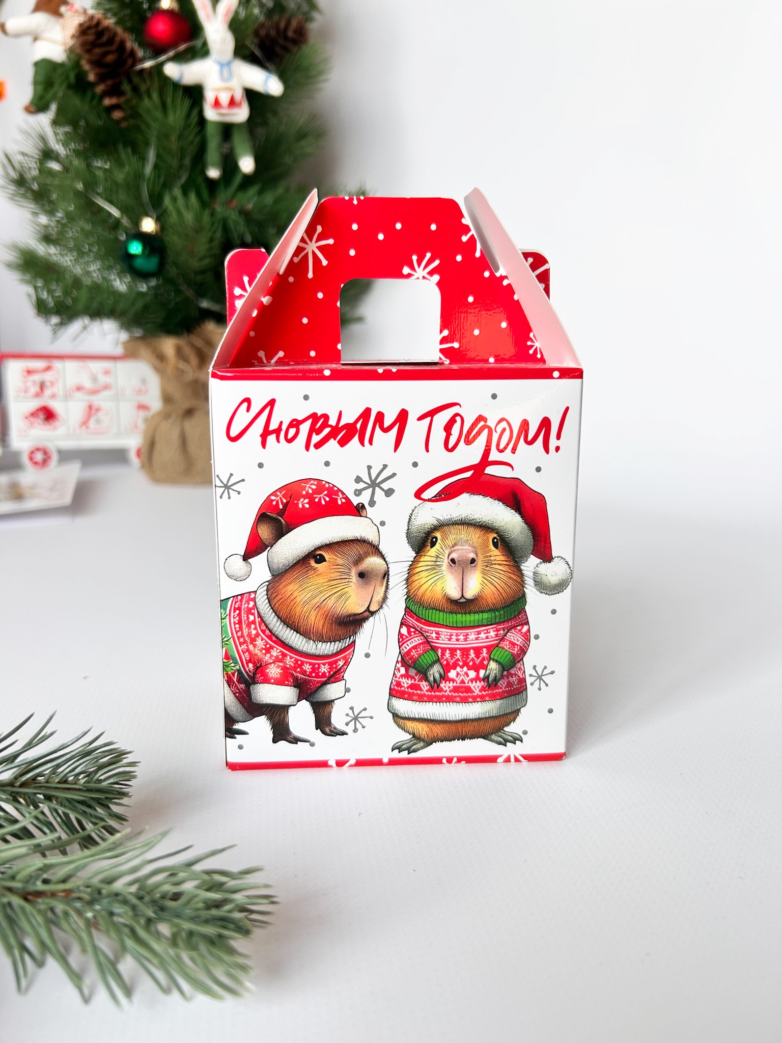 Коробка новогодняя подарочная Капибары, 97х74х112 (+48) мм (моноблок)