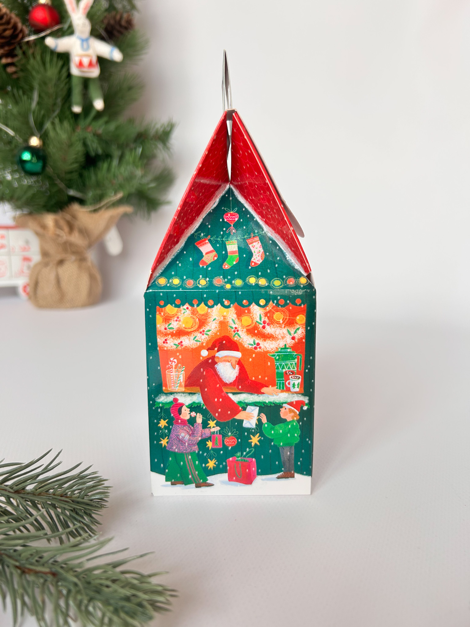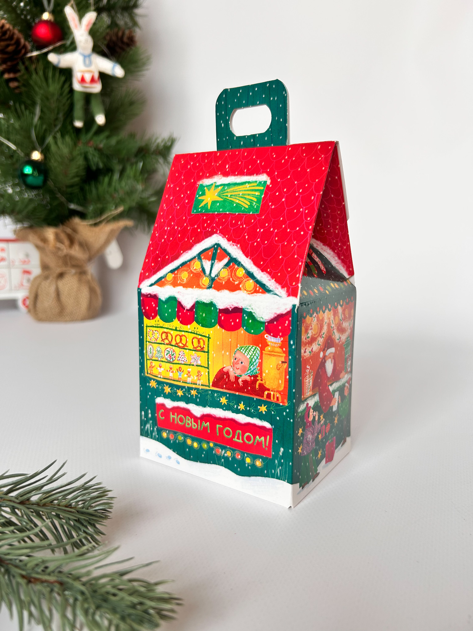 Коробка новогодняя подарочная Ярмарка, 91х70х157 (+30) мм (домик)