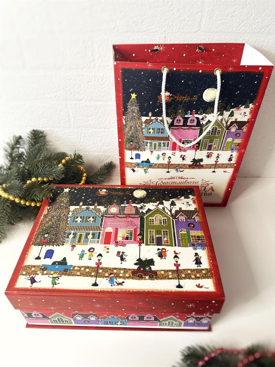 Коробка шкатулка подарочная «Новогодний городок»