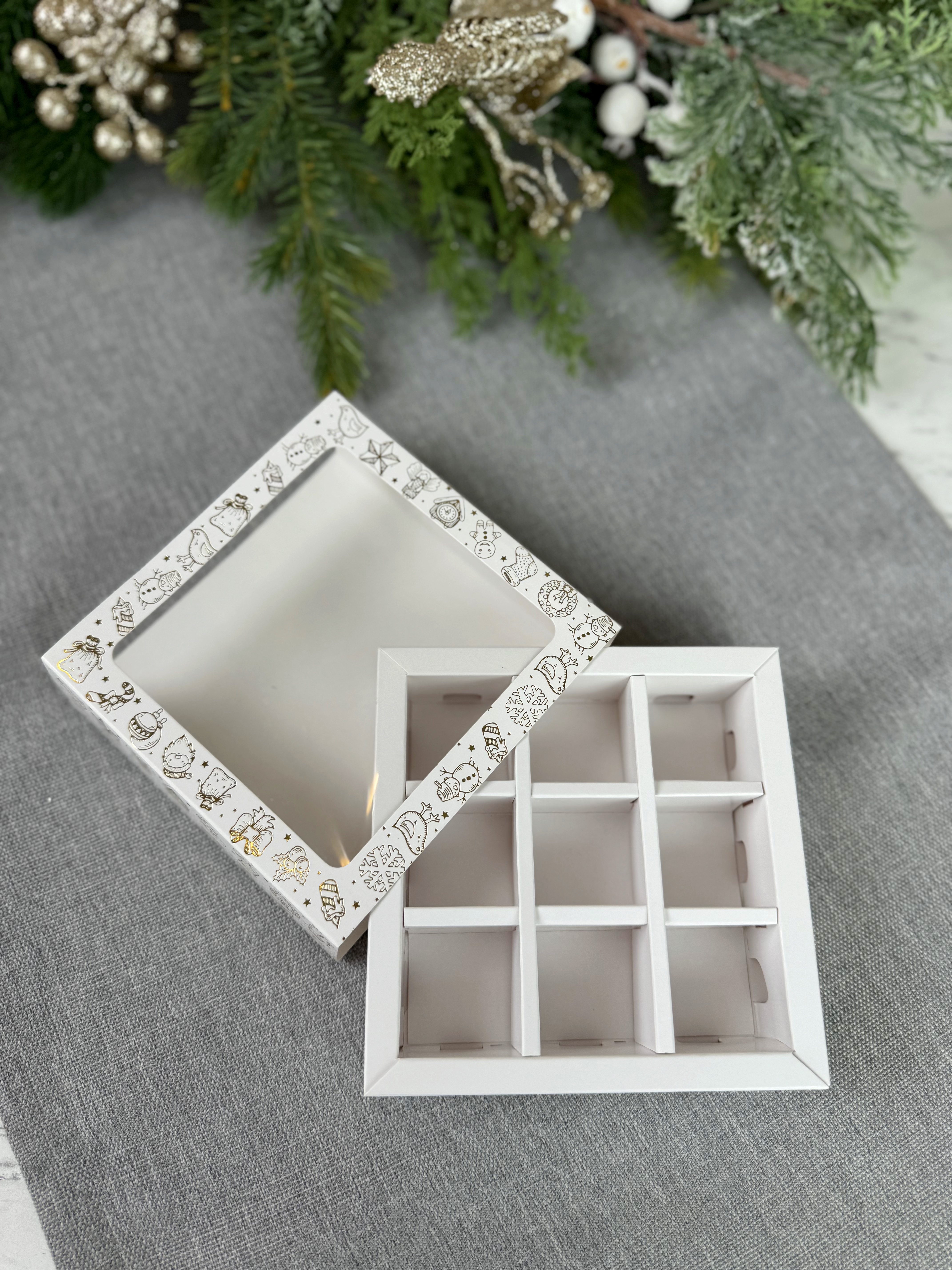 Коробка с окном под 9 конфет Золотой Новый Год, 138х138х38 мм (дно и обечайка)
