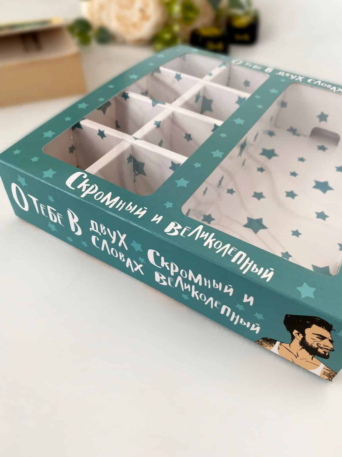 Упаковка под 8 конфет и шоколад «Великолепному»
