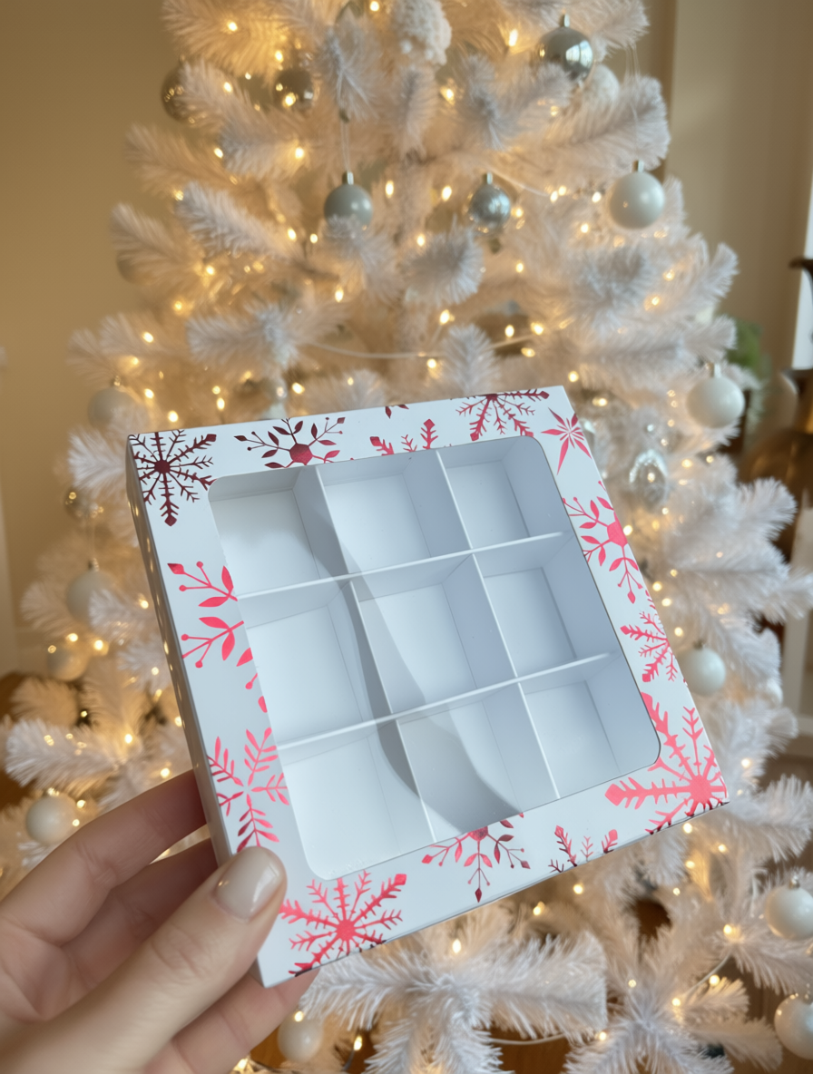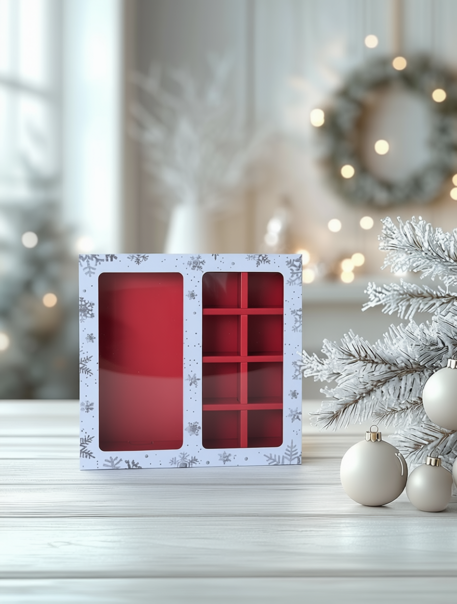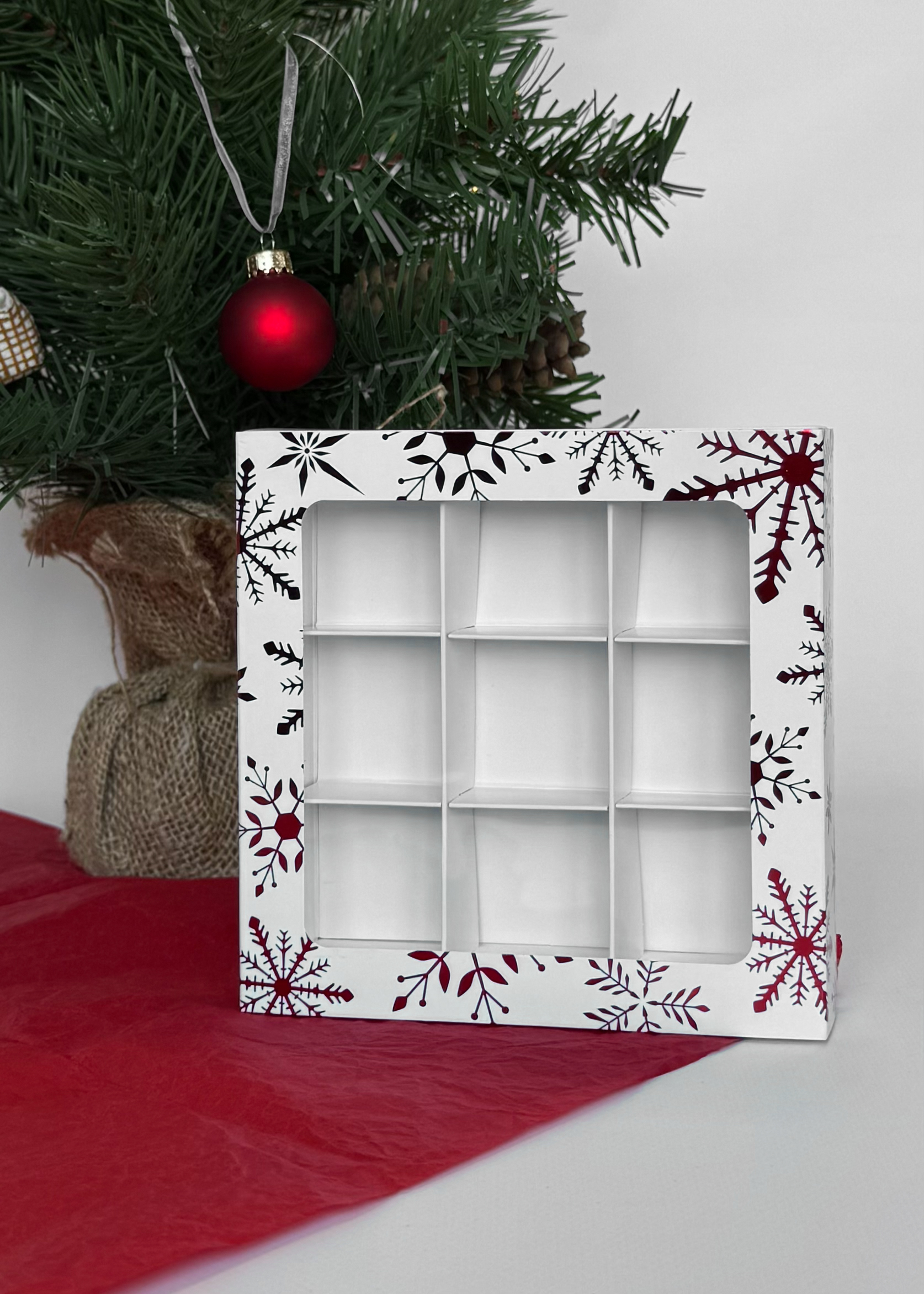 Коробка с окном под 9 капкейков Снежный праздник, 250х250х100 (крышка/дно)