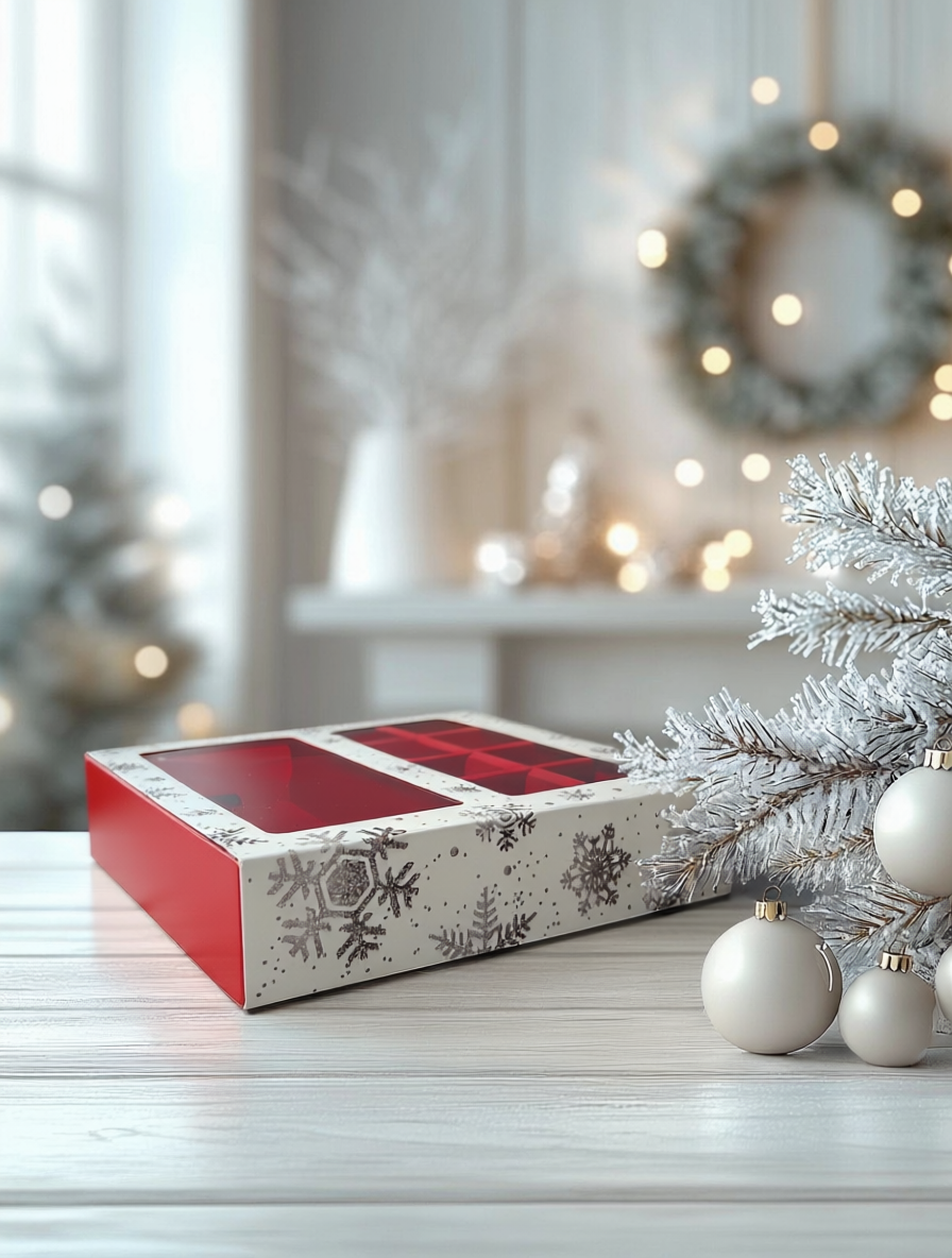 Коробка с окном 8 конфет плитка шоколада Новогоднее серебро, 177х178,5х38,5 мм (дно и обечайка)