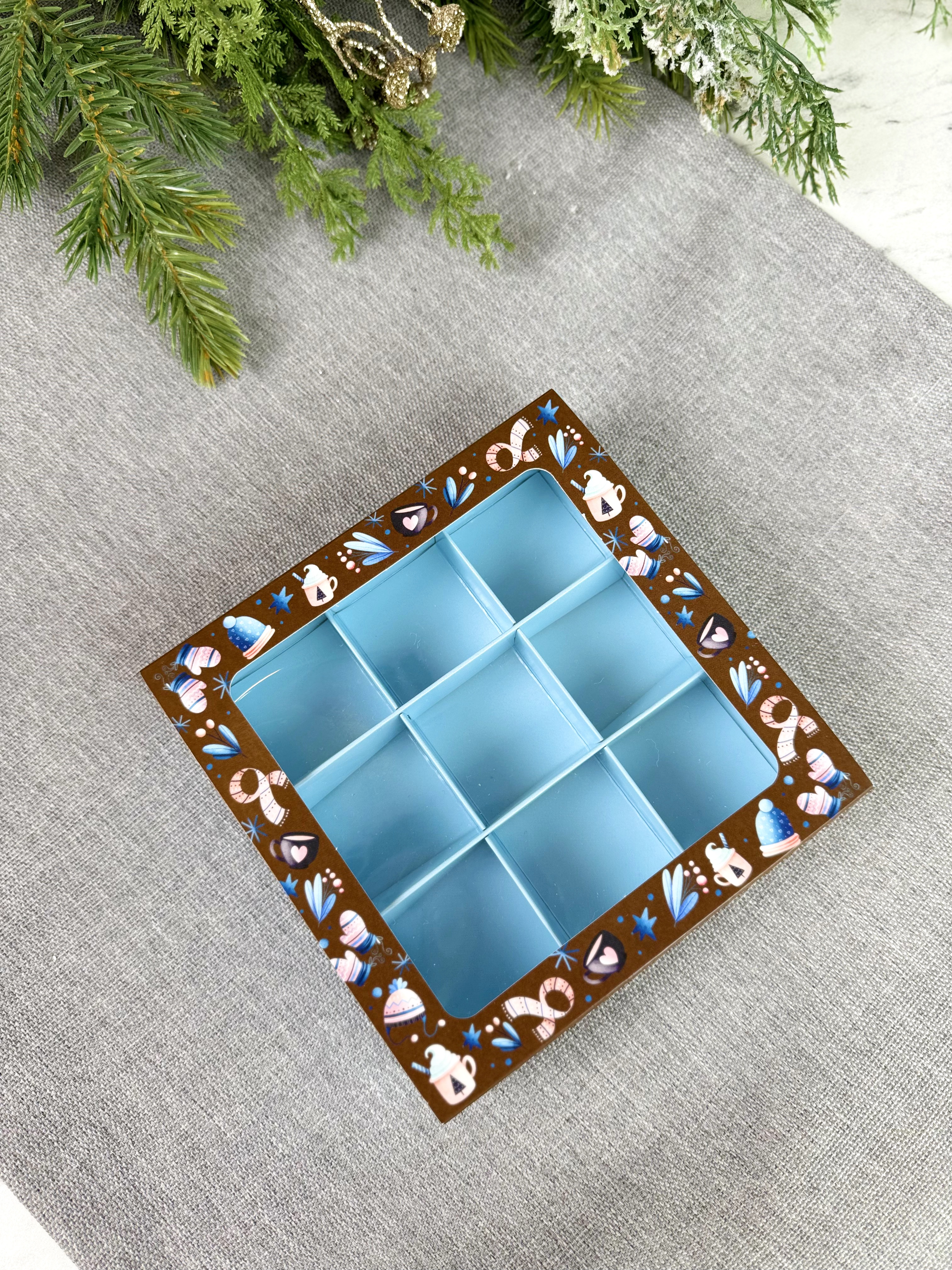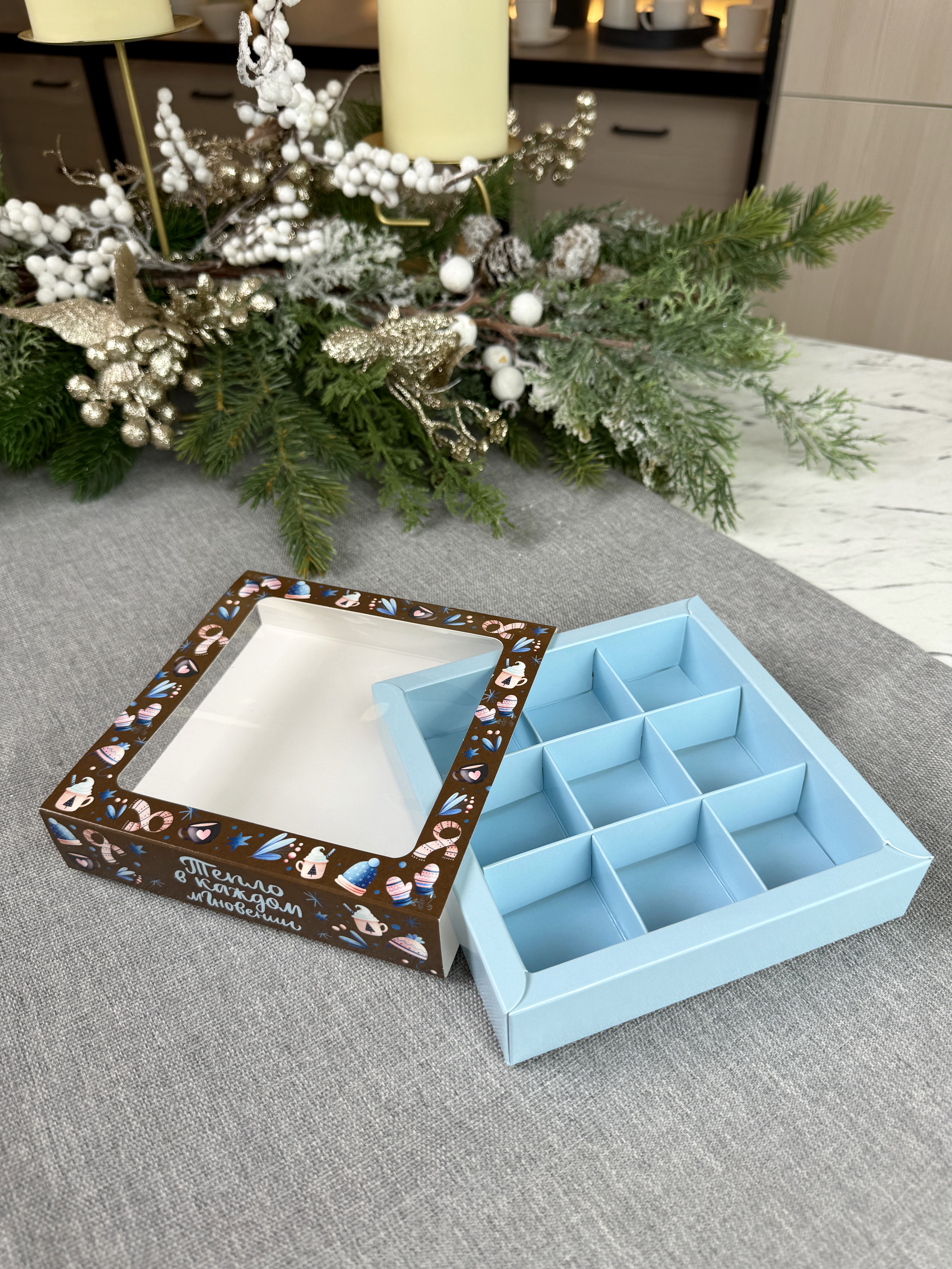 Коробка с окном под 9 конфет Вечернее Какао, 138х138х38 мм (дно и обечайка)