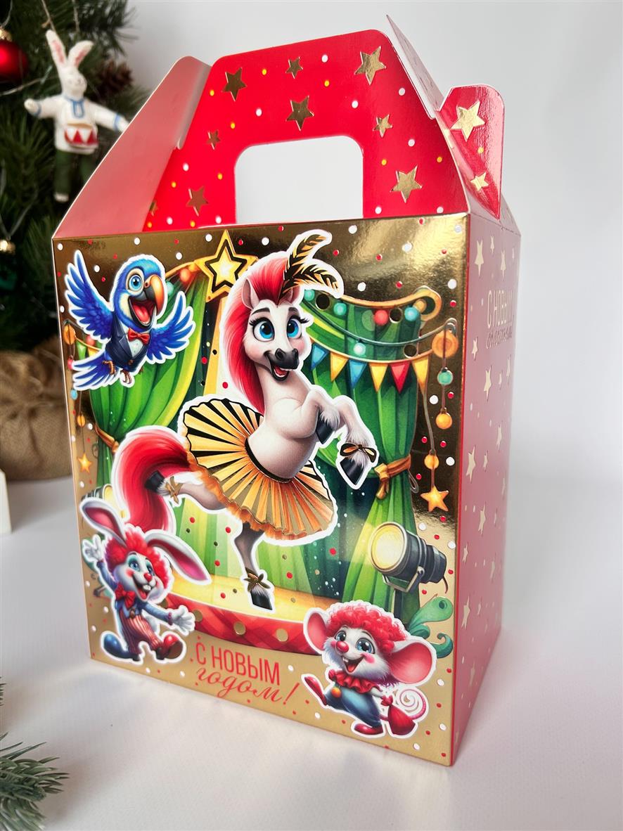 Коробка новогодняя подарочная Большой Цирк, 170х110х190 (+45) мм