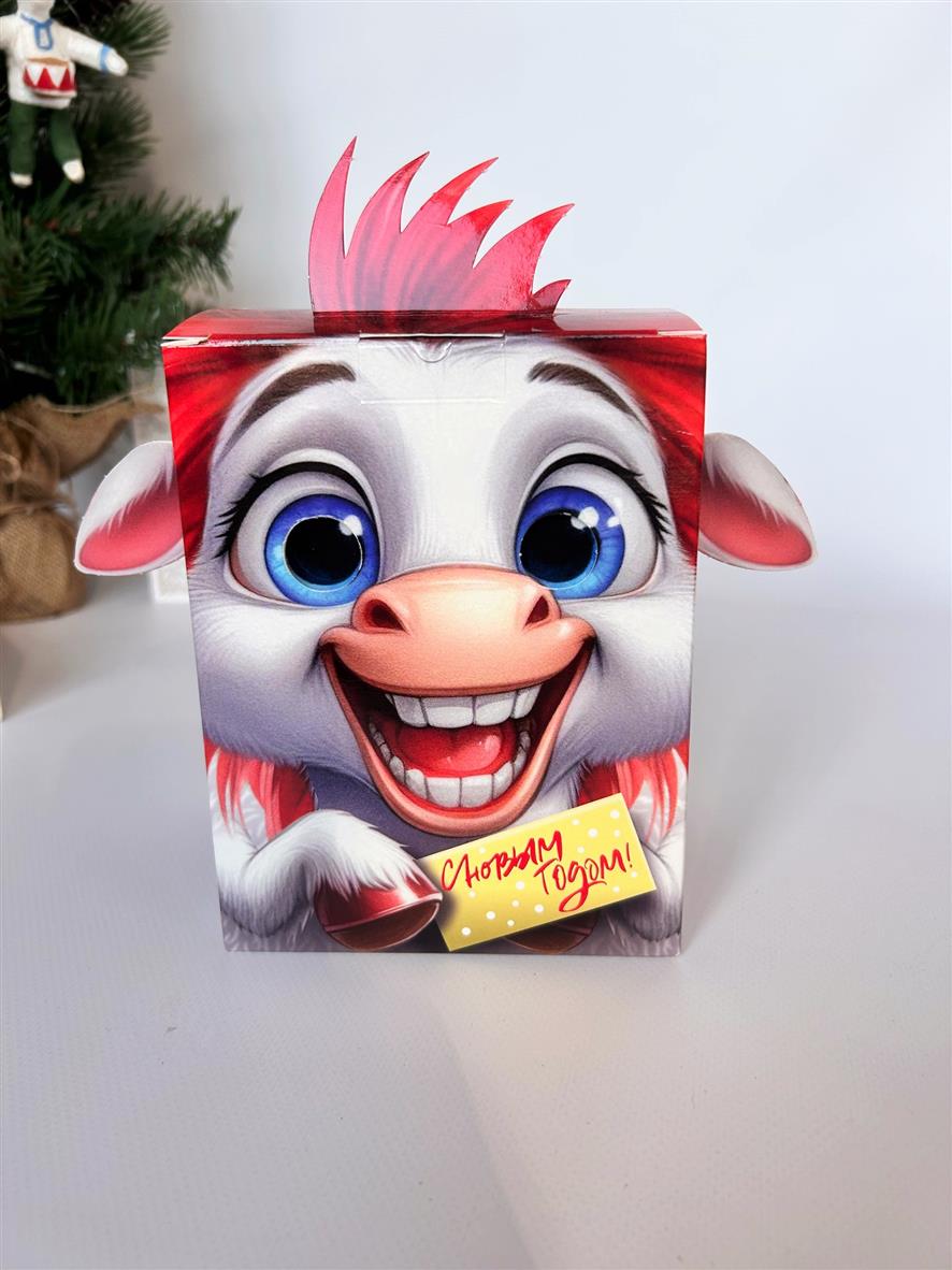 Коробка новогодняя подарочная Смекубик Конёк, 120х120х155 мм (коробка со шнурком)