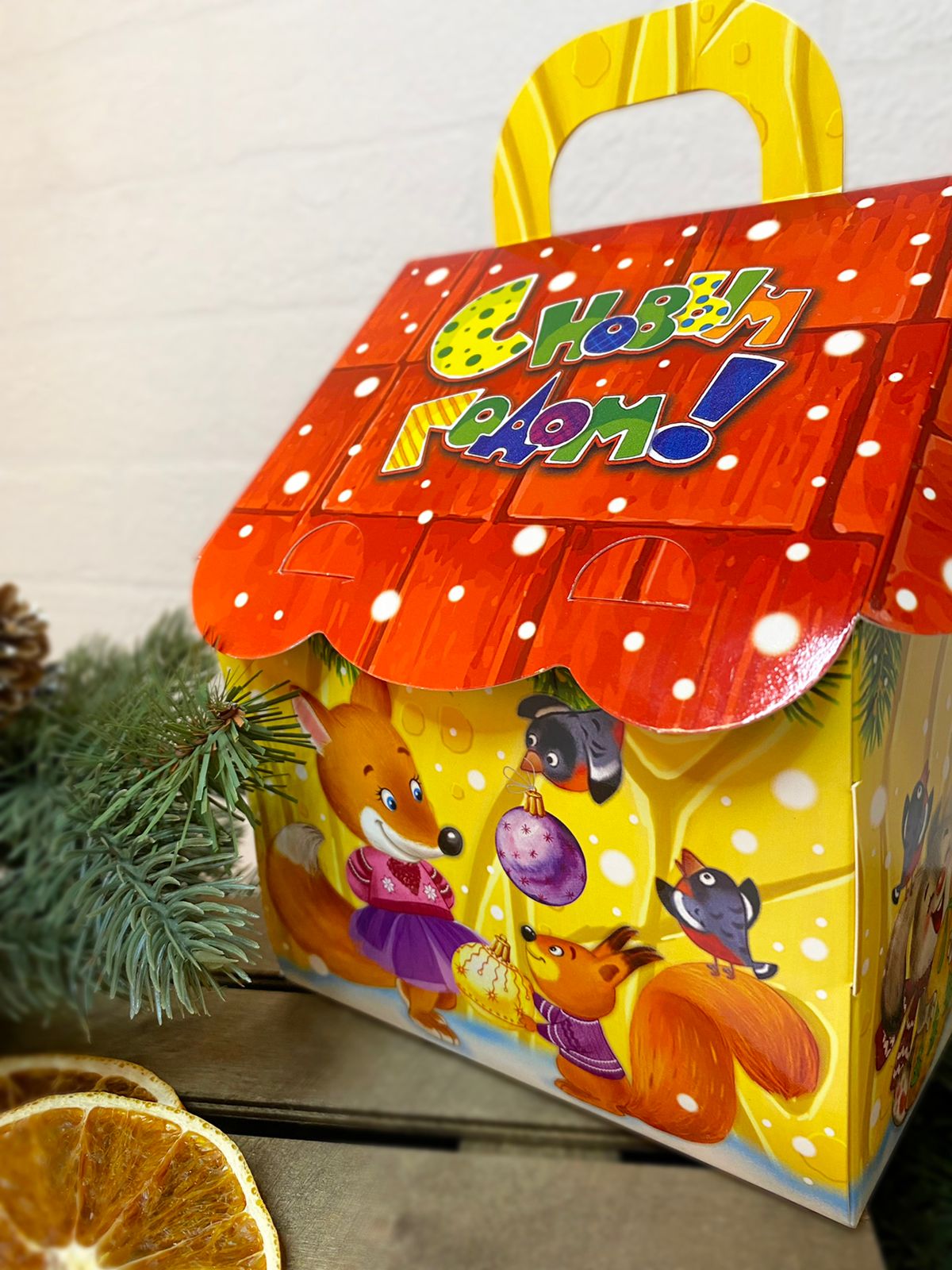 Коробка новогодняя подарочная Радостные хлопоты, 135х140х171 (+40) мм (домик)
