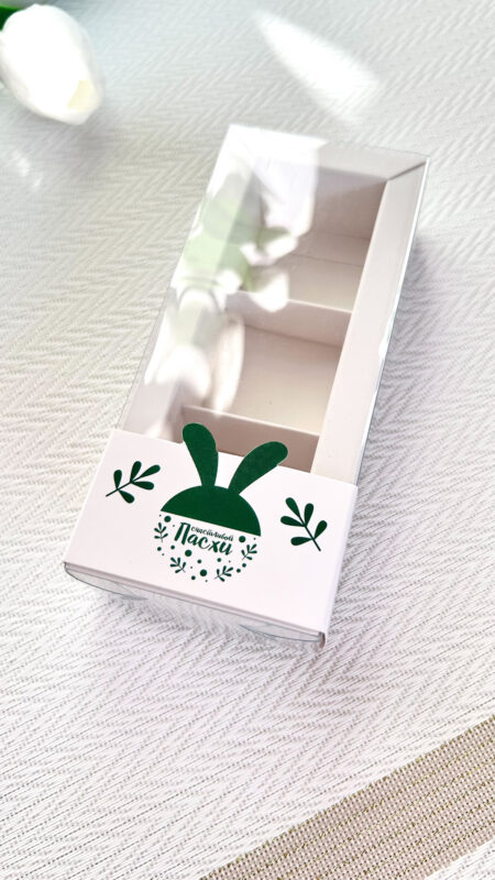 Кондитерская упаковка. Подходит для размещения капкейка, кулича, кекса, трайфла, пирожного и иных сладких презентов с Пасхальной тематикой. Так же может быть использована как универсальная упаковка для размещения изделий ручной работы, керамических изделий, свечей, изделий из стекла и камня