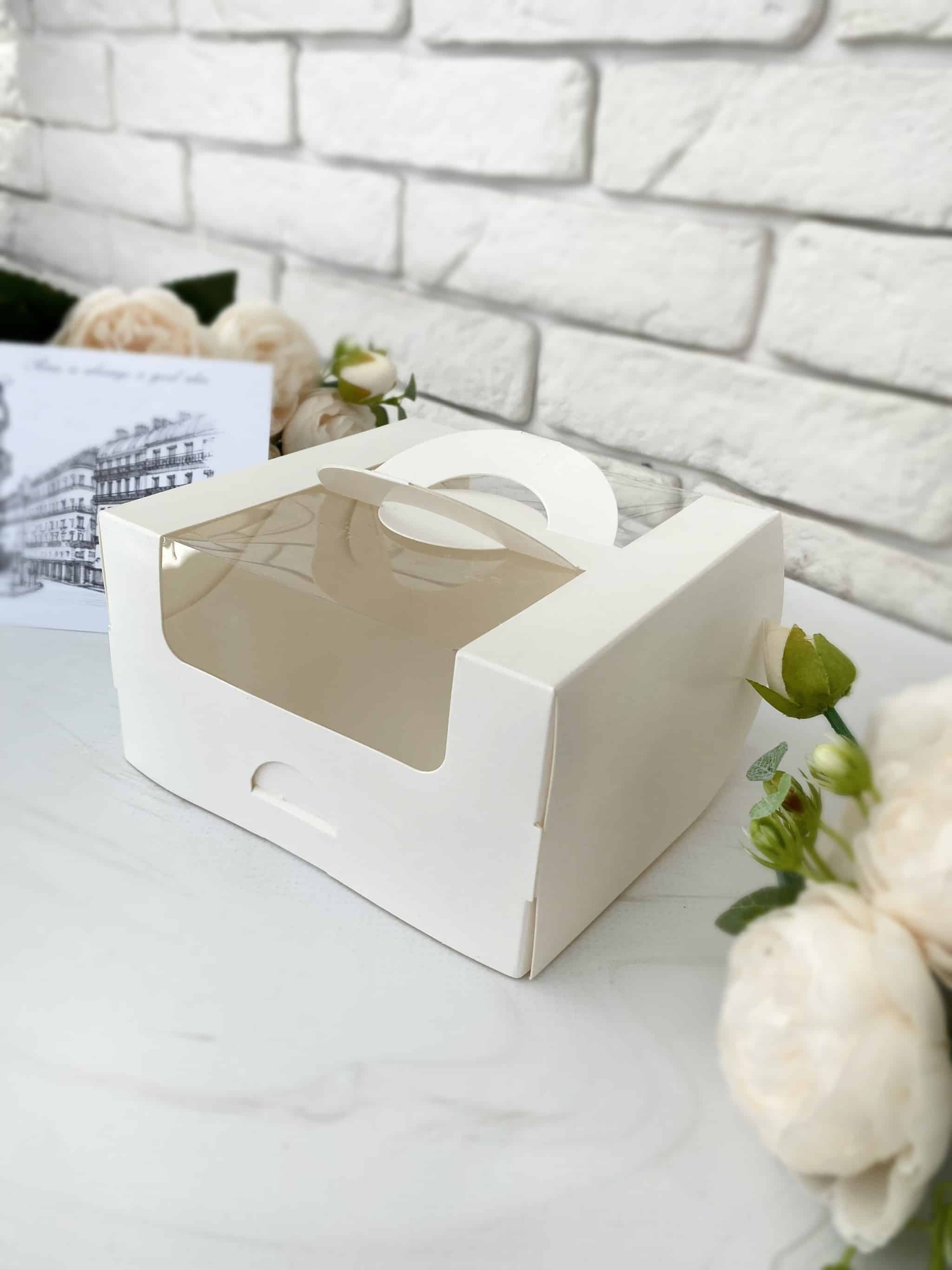 Упаковка под 4 капкейка/пирожных/бенто-торт с окном, белая