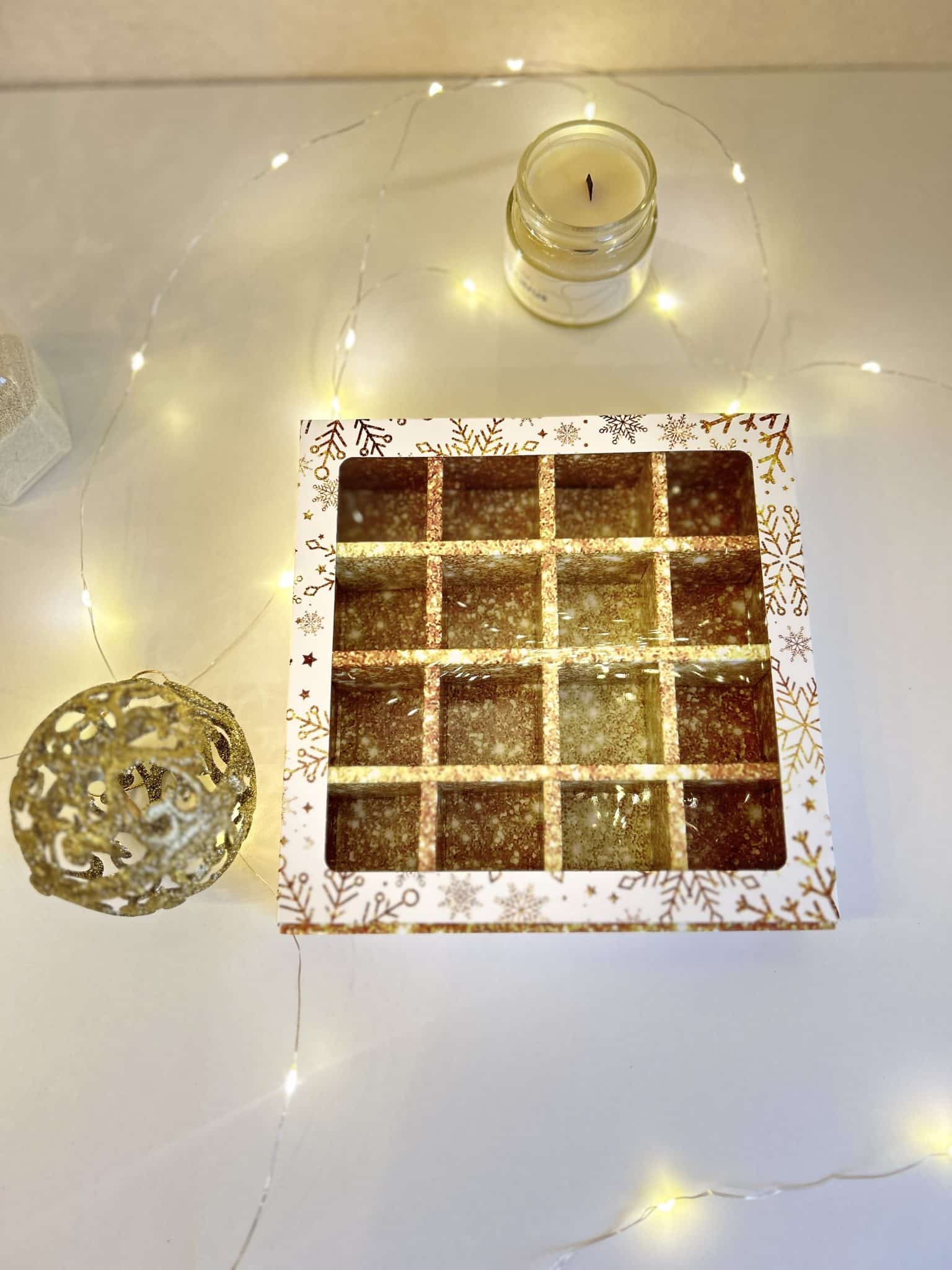 Коробка с окном под 16 конфет Золотая, 177х177х38 мм (дно и обечайка)