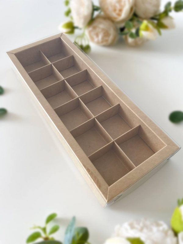Коробка на 12 конфет с внутренними разделителями. Размер ячеек 3,5*3,5*3,5 см. Подходит для пряников, мармелада и иных сладких презентов. Может быть использована для размещения изделий ручной работы