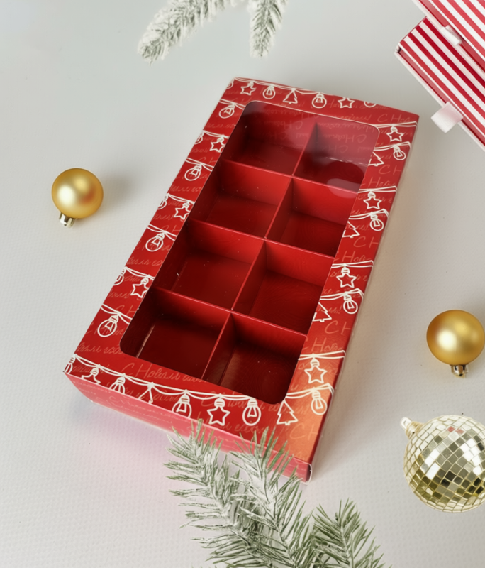 Коробка под 8 конфет (пенал) с тонкими разделителями, белый