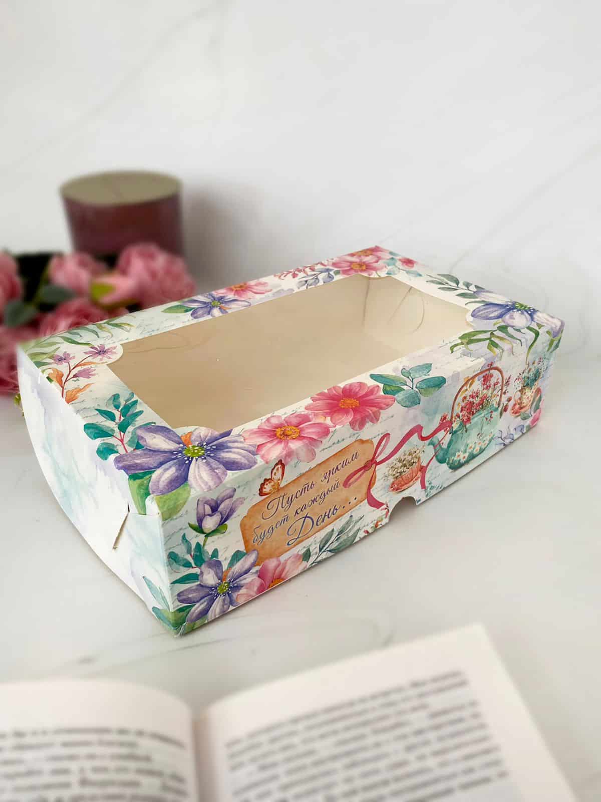 Кондитерская упаковка под зефир, подходит для размещения печенья, пряников, пирожных и иных сладких презентов. Может быть использована как универсальная коробка для подарков и изделий ручной работы
