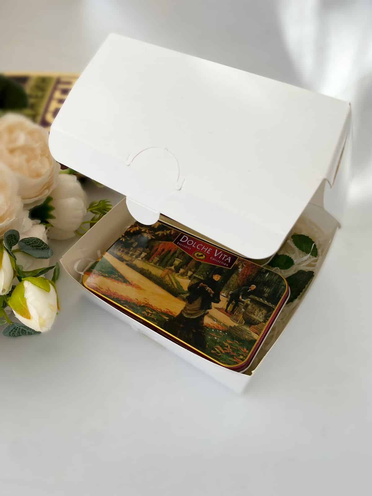 Кондитерская упаковка. Подходит для размещения гамбургера, бенто-торта, пирожных и других кондитерских изделий. Изготовлена из прочного целлюлозного картона